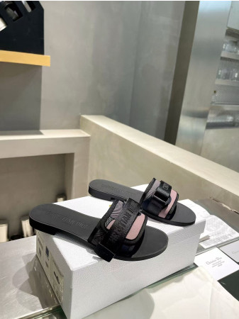 ua D*or d-lane slide black calfskin with openwork microcannage motif
